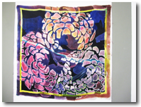大判スカーフ:まずは下書きをしてから日本にはない薬を用いました。色付けは先生にアドバイスをもらいながら、グラデをいれました。